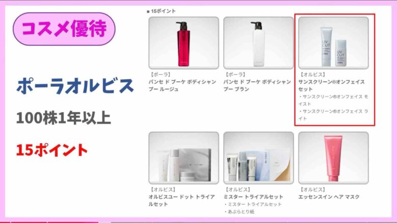 保有ポイントに応じて自社商品が選べます。kinkoは下記の日焼け止めを頂いていました。使い心地はなかなかよかったです。