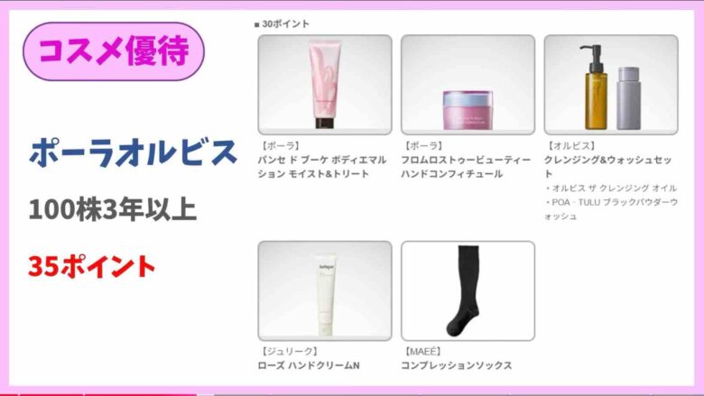今年は3年以上保有になるので、35Pもらえます。30Pのクレンジング&ウォッシュセットを狙っています。