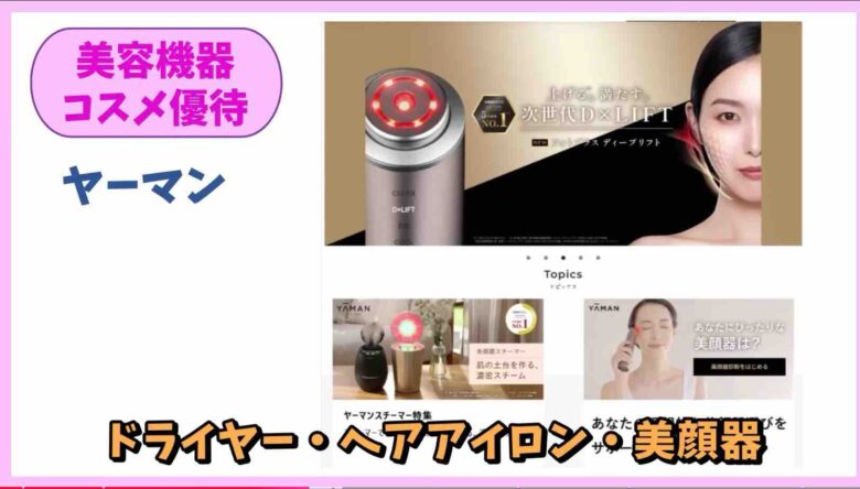 ヤーマンのウェブストアで使用できます。美顔器やヘアドライヤー、コスメなどたくさんの商品の中から選べます。