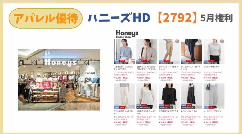 ハニーズはリーズナブルなアパレルで全国どこにでもありますから使い勝手が良さそうです。