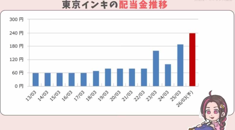 2023年に記念配当を出したのち一度減配していますが、その後は大幅に増配しています。