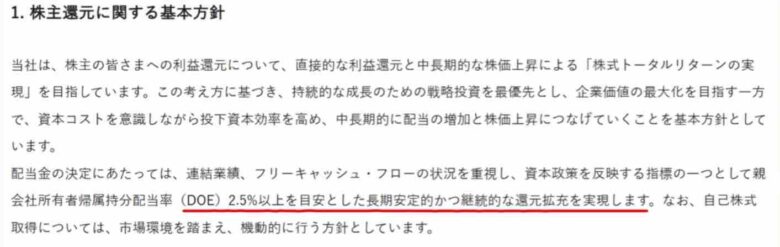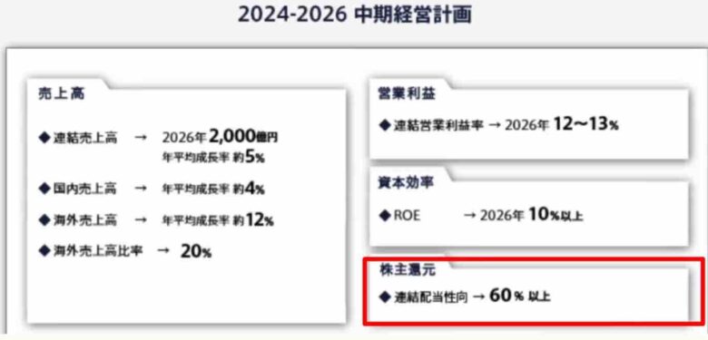 中期経営計画での株主還元方針は、連結配当性向60%以上を謳っています。