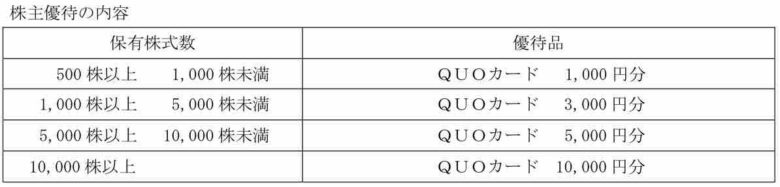 今回新設された株主優待はQUOカード!500株以上からですのでちょっとハードルが高いですね😅 1年以上保有の長期縛りもあります。ただし、初回特典として2026年3月期は保有期間の条件がありません。