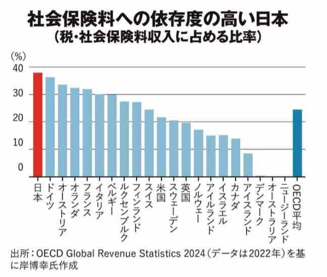 そして、OECD加盟国の中で一番社会保険料への依存度が高い国が日本なんです。福祉国家スウェーデンよりも遥かに高いのには驚きます🫢