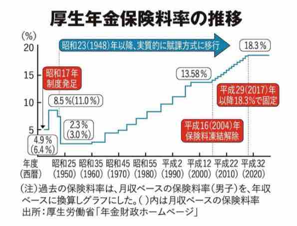 僅か35年余りで受給開始年齢が55歳→65歳(60歳から繰上げ受給可)、保険料率10%→18.3%です!ヒィ〜😱 これでは手取りが増えるはずがありません!