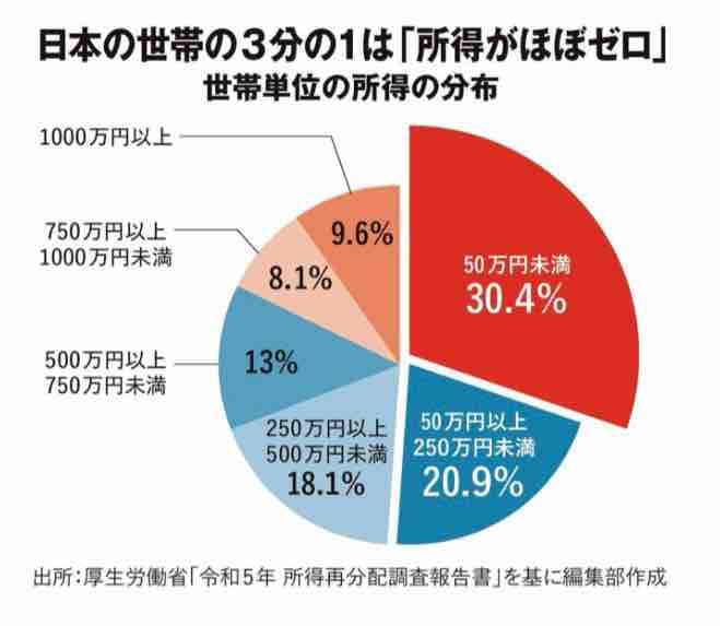 って、思っていたらちゃんと掲載されていました😅 1000万円以上の所得がある世帯は1割にも満たないんですよ💦 このグラフは年金額を所得に入れていないので、所得ほぼゼロの30%は年金生活者がほとんどだと思われます。