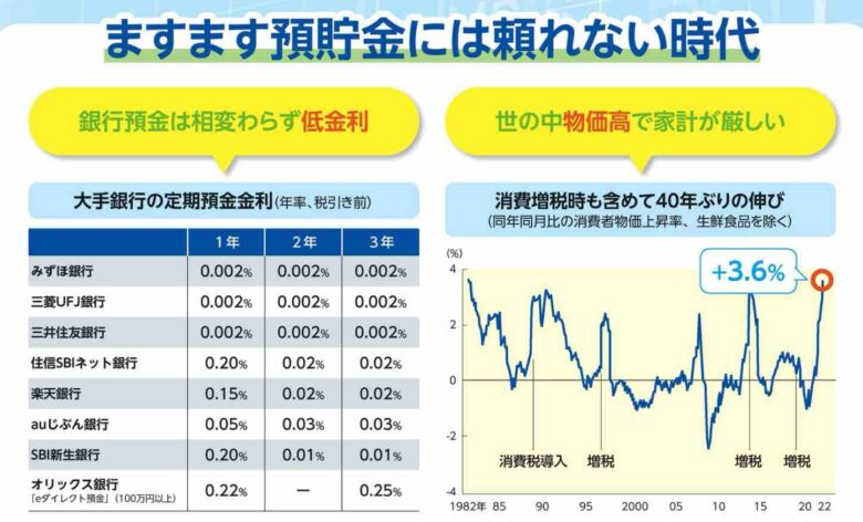銀行にお金を預けておいても預金金利は物価高に追いつけません💦