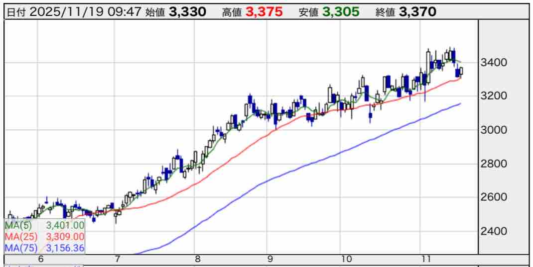 日足のチャートを見ると上昇トレンドを形成中です。増配と株主優待の発表があった割に株価はそこまで反応していません💦